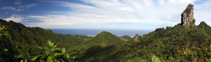 I made it to the top in about 45 minutes and stood on the ridge of the island right next to this rock pinnacle they call the Needle. You used to be able to climb the needle itself but a sizeable piece fell off it a few years back and now there are some very to-the-point signs advising against climbing. I heeded the warnings and just enjoyed the view from the overlook – it was good enough. The descent on the south side was much steeper but fortunately they have quite a few ropes in place that you can use to help yourself down. Eventually the trail flatted out and followed a nice little stream past a waterfall to the coast. Total elapsed time was just over two-hours.