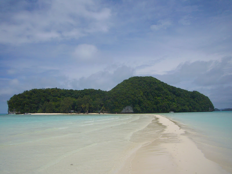 After Jellyfish Lake we made a lunch stop at one of the nearby beaches. The Rock Islands are all part of a state park and on many of the beaches you can find nice picnic huts and even bathrooms – you don’t see luxuries like that too often in this part of the world! A large tour boat was “parked” at the beach but it was still peaceful enough.